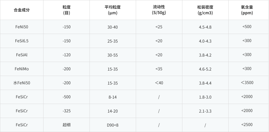 金屬軟磁粉體性能數據表