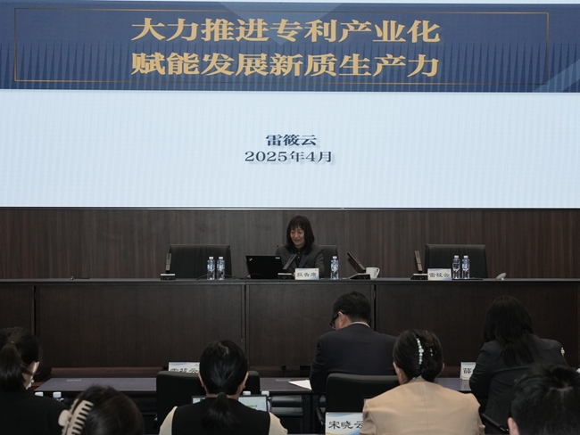 雷筱云做會議主題報告《大力推進專利產業化 賦能發展新質生產力》,從創新驅動發展的形勢與要求、措施與進展,部署與展望等方面,深刻解讀了國家對專利轉化運用的部署要求,并就加速培育和發展新質生產力提出有關思考和建議。薛岳做《聚焦“四不”難題 激發內生動力 打造內驅型科技成果轉化生態系統》的報告,圍繞科技成果轉化實踐開展經驗分享,詳細介紹了有關工作思路和創新舉措。與會領導和專家圍繞強化知識產權高效益運用和高效率產出等方面開展深入交流研討。
